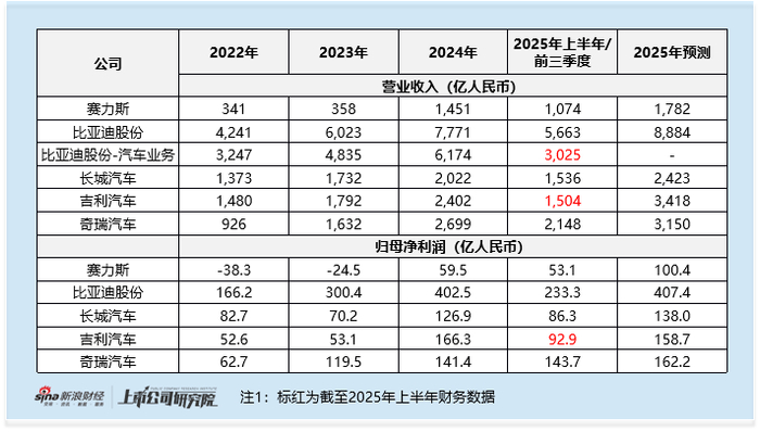 赛力斯港股首日破发的核心症结,在于其高估值始终缺乏扎实的业绩支撑,而2025年三季报披露的经营数据,进一步印证了这一隐患。10月31日盘后,赛力斯同步发布2025年前三季度及第三季度财务数据:从整体来看,前三季度营业收入1105亿元,同比仅增长3.7%;归母净利润53亿元,同比增幅31.6%,看似实现“营收微增、利润高增”的局面。但深入拆解单季度表现可见明显压力——第三季度单季营业收入481亿元,同比增长15.8%,营收增速虽较前三季度整体水平有所提升,归母净利润却同比下滑1.7%,单季度盈利能力出现阶段性承压,打破了市场对其“利润持续高增”的预期。更关键的是,这份业绩与市场目标仍存在显著差距。根据卖方机构预测,赛力斯2025年全年需实现营业收入1782亿元、净利润100亿元。但截至前三季度,其营收仅完成全年目标的60%,净利润完成率更低至53%。