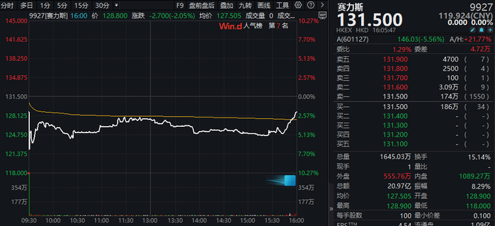 作为2022年至今港股市场最大整车厂IPO、今年第三大港股IPO,赛力斯的港股上市之路从招股阶段的“高折价争议”,最终走向首日“破发边缘”。11月5日,赛力斯在港交所挂牌交易,尽管最终以131.50港元/股的发行价收盘,勉强避免“破发”标签,但盘中一度探底118港元/股,较发行价跌超10%;开盘价128.90港元/股亦低于发行价,全程依赖稳市商中金动用绿鞋资金“托底”才挽回局面。这场“惊险过关”的上市首日表现,实则是其估值虚高、业绩承压、华为光环褪色等深层问题的集中爆发,也印证了此前招股阶段市场担忧的合理性。