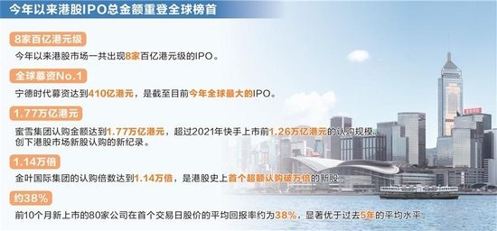 “香港前10个月IPO募资总金额为2154.6亿港元(约277.2亿美元),已大幅超出我们年初全年募资金额达到170亿—200亿美元的预期。”浦银国际首席策略分析师赖烨烨说。
