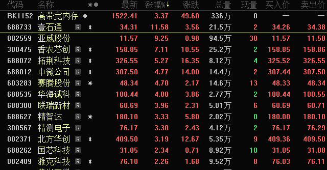 今日(11月6日)早盘,A股高带宽内存(HBM)概念大幅上涨,壹石通涨超11%,亚威股份涨超9%,香农芯创涨超7%,拓荆科技涨超5%。