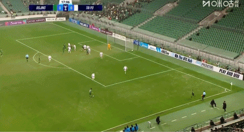 第18分钟,国安战术角球开出,斜传打进禁区,恩加德乌一脚射门,皮球被门将得到↓