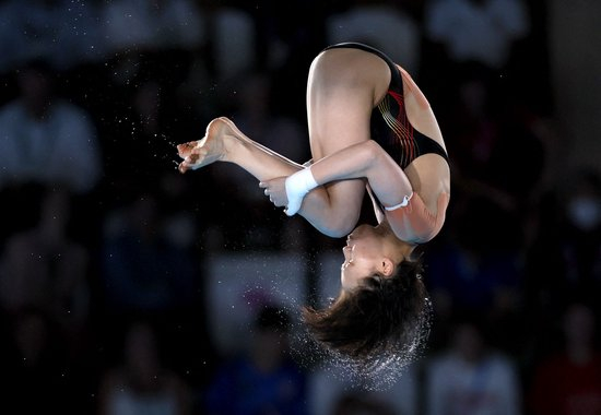 直播吧11月6日讯 第十五届全运会跳水女子双人10米台决赛,陈芋汐/掌敏洁夺得金牌。