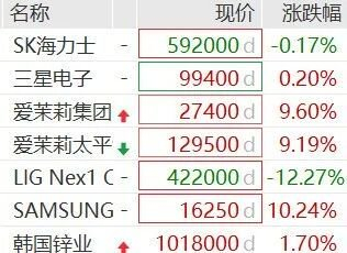 韩国KOSPI指数一度跌1.4%,随后指数翻红。麦格理股价跌幅扩大至7.2%,为4月7日以来最大跌幅。三星电子小幅上涨,海力士跌0.17%。