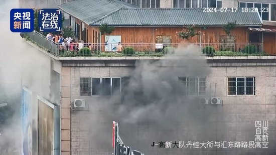 2024年7月17日晚上6点多,四川省自贡市九鼎大楼发生火灾,消防员到达现场后迅速组成多路灭火救援力量分别从各个通道进入火场内部灭火救人。