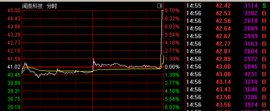 闻泰科技(600475)尾盘五分钟直线拉升,逼近涨停,全日成交37.7亿元。