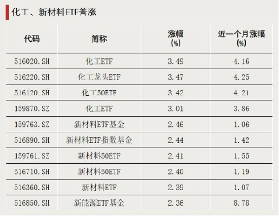 11月7日,化工板块逆势上涨,相关ETF普涨。